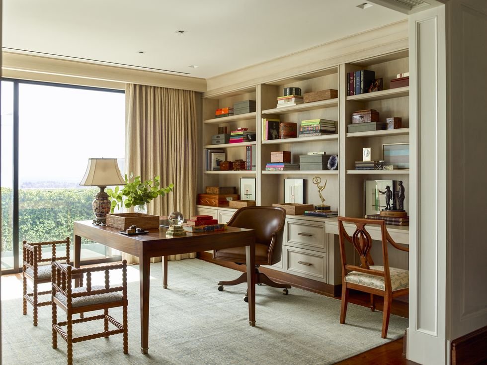 “We are seeing creative uses of existing spaces in homes—closets for instance—that can be transformed into a functional office with new cabinetry,” says San Francisco-based designer Allison Caccoma of Allison Caccoma Interiors. “Other less used rooms in homes are also increasingly needed as a beautiful office. The trick is to make it pretty. Paint the cabinetry blue or green, decorate with special fabrics like it’s a proper room and enjoy your time working from home.”